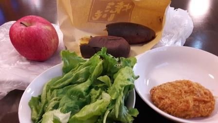由左至右是青森蘋果,烤番薯,萵苣,可樂餅