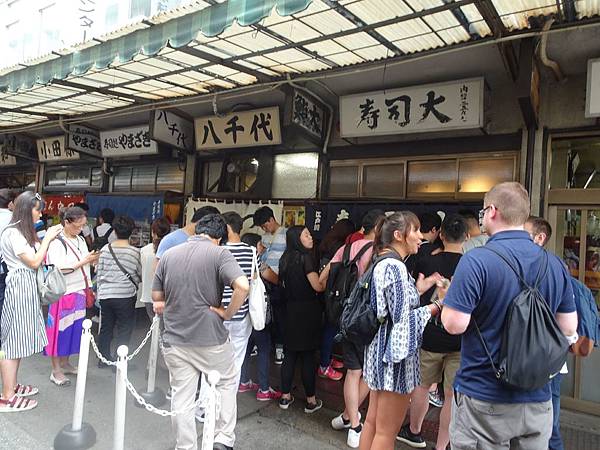 經過要排隊的名店:大和壽司跟壽司大,其實壽司大的排隊人潮還繞過圖片右方,大排長龍呢!
