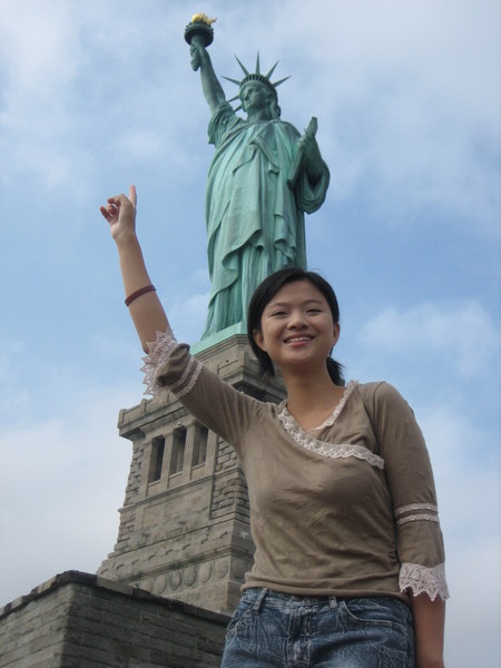 九年前,獨自去美國自助旅行,跟紐約自由女神合照