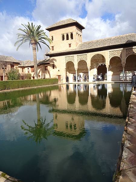 帕塔爾庭園(Jardines de Partal),圖中的為貴婦塔(Torre de les Damas)跟水池